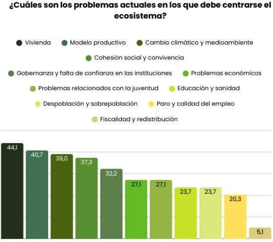 Este II Informe de Foro NESI constata un avance relevante en uno de los desafíos señalados ya en 2024: aterrizar la conversación en la vida cotidiana y vincular la transformación económica a las preocupaciones reales de la ciudadanía. En esta edición, el reto de centrarse en los problemas de la gente mejora para un 35,6% del ecosistema encuestado, reflejando una mayor orientación hacia impactos tangibles y medidas que puedan escalarse.